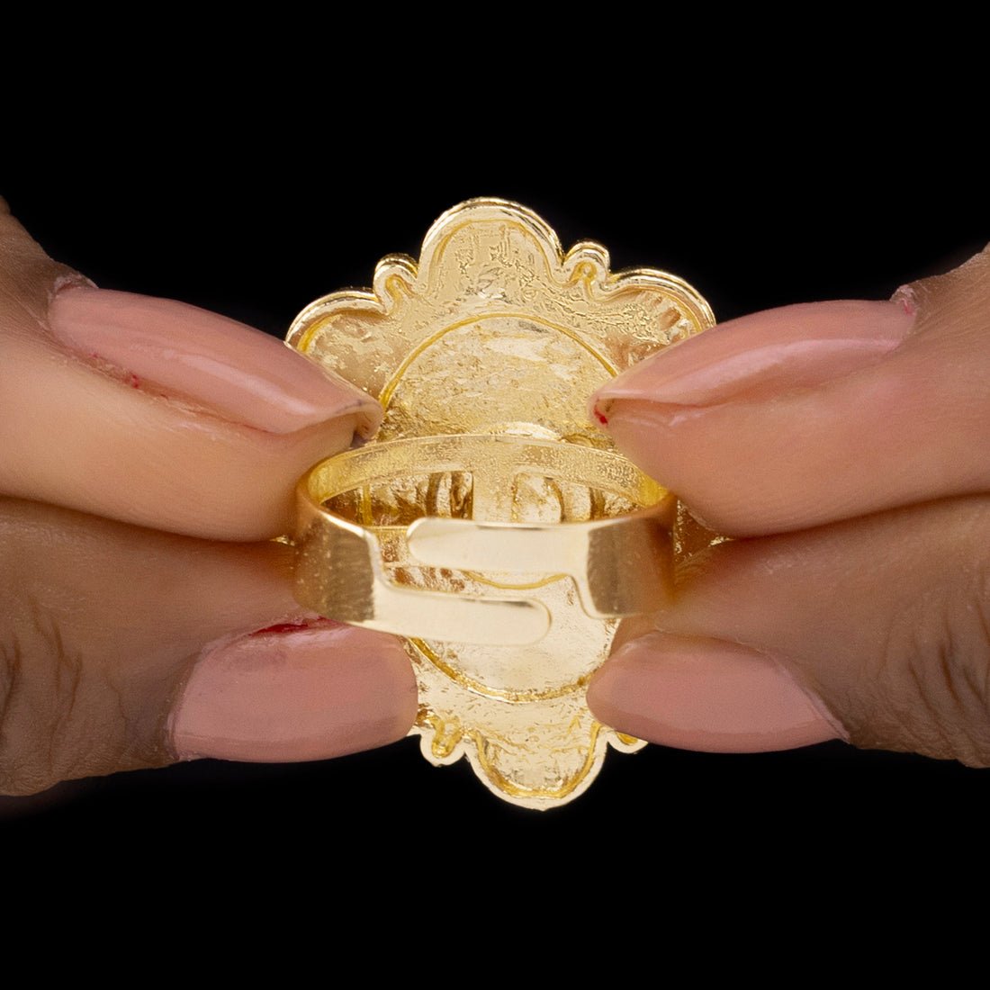 Bold elegance and artistic flair are vividly shown in this round acrylic rainbow stone flower cocktail ring. Each petal of the eye-catching flower-patterned design is made from oval-shaped rainbow acrylic stones that emit brilliant hues, producing a captivating play of light and dimension. It is ideal for events where you want your accessories to make a statement because of its enormous form. It is pleasant to wear while retaining its dramatic appeal because it is lightweight and long-lasting. This ring enhances casual ensembles or provides a pop of color and refinement when worn with formal evening attire. Perfect for people who enjoy glitzy yet whimsical jewelry, it represents originality, self-assurance, and the beauty of uniqueness.