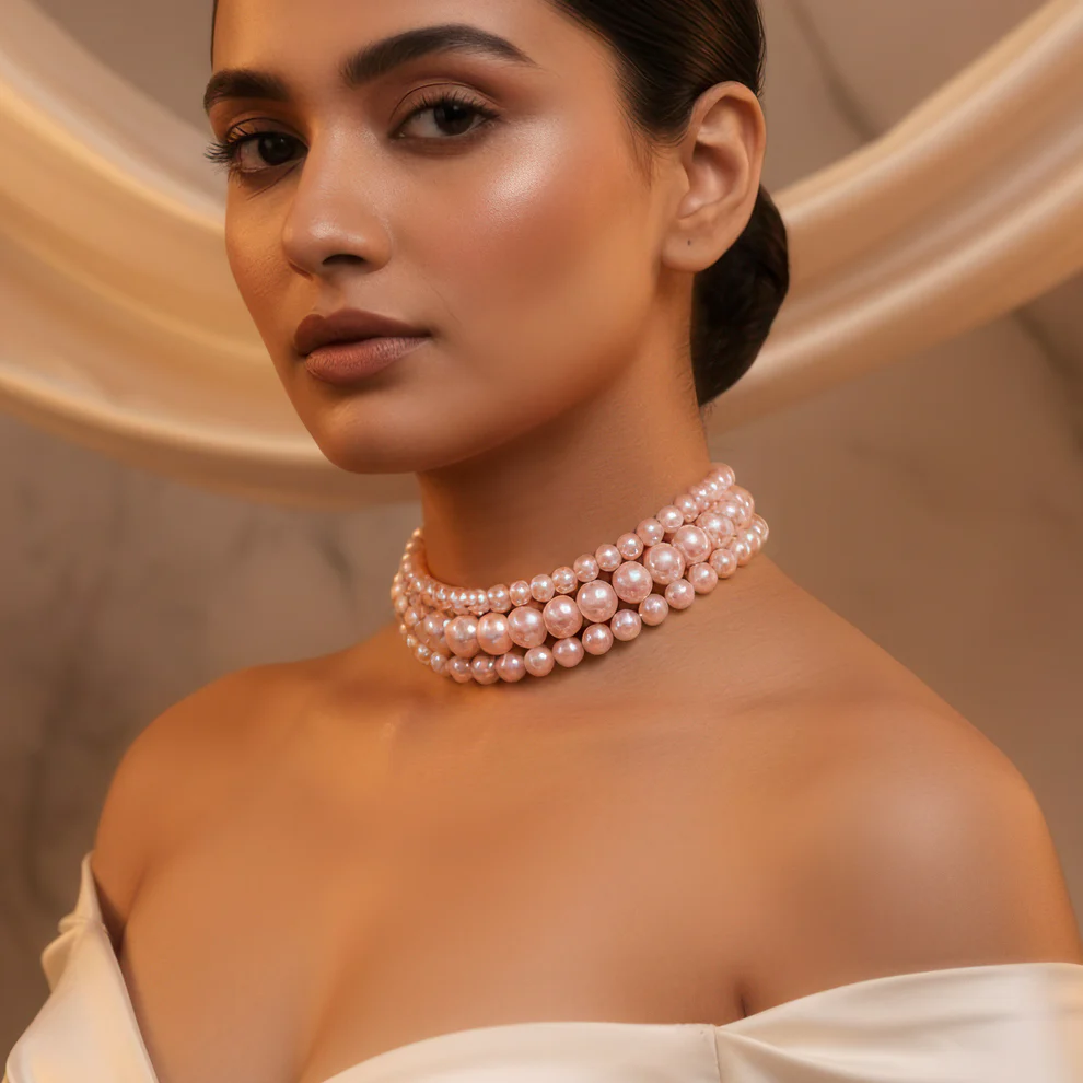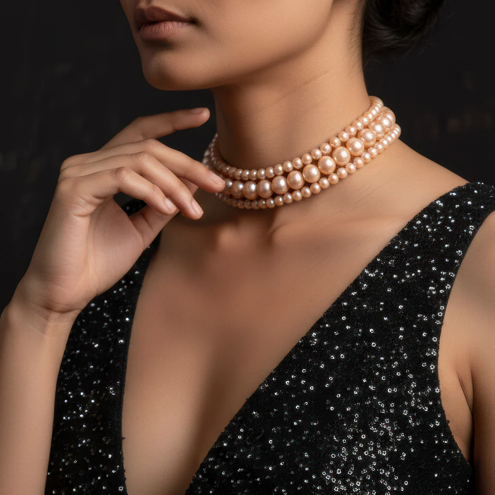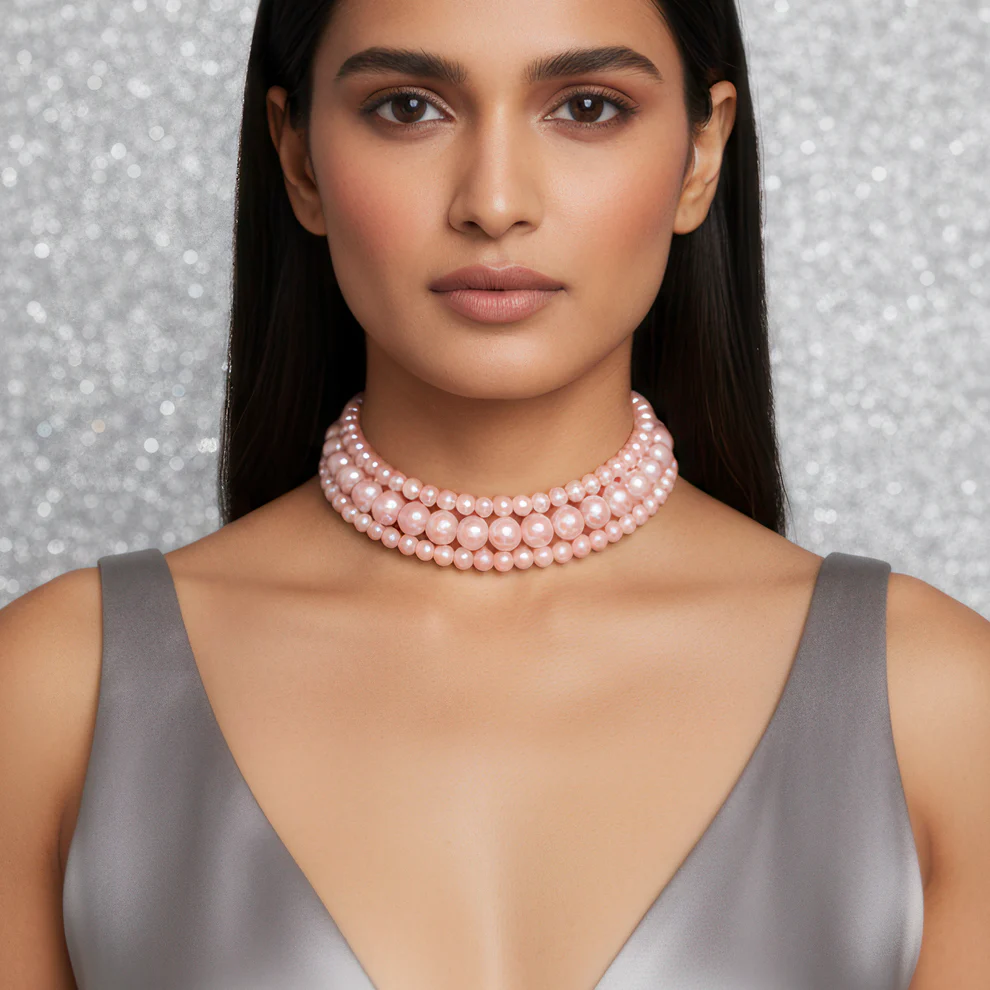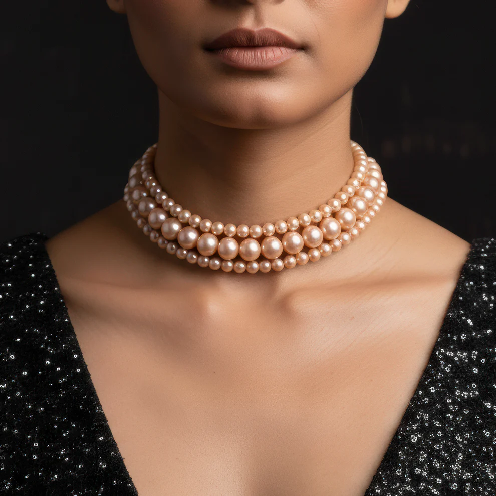 This choker necklace exudes a sophisticated charm and is bold and sophisticated, with dazzling blackish grey pearl beads. The distinctive pearl shade has a classic yet contemporary appeal by fusing the gentle shimmer of grey with the depth of black. Its timeless choker design adds a striking touch to any ensemble as it hangs elegantly around the neck. This necklace effortlessly enhances both classic and modern styles, making it ideal for parties, celebrations, weddings, and nighttime get-togethers. It provides all-day elegance without sacrificing style and is lightweight and comfortable to wear. It is a versatile addition to any jewelry collection because of its smooth finish and rich pearl tones, making it perfect for people who value accessories that strike a balance between assertive character and sophistication.