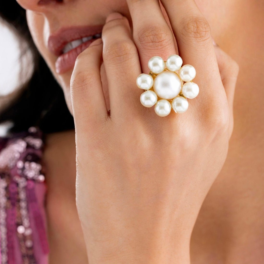 The PRAO Pearl Ring is a magnificent piece of jewelry that exudes elegance and timeless appeal. Its circular form highlights the natural beauty of pearls. The pearls used in the ring are typically high-quality chosen for their brilliance smooth surface and consistent shape. The PRAO Pearl Ring emanates sophistication and refinement making it appropriate for a variety of occasions including formal gatherings and everyday use. Its design strives to accentuate the intrinsic shine of pearls creating a timeless item that may be treasured for years. This ring is popular because of its timeless appeal and ability to compliment a variety of styles