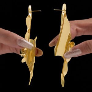 These bold metal Thunderbolt earrings a striking green crystal set in a contemporary design. The large thunderbolt shape creates a daring statement, while the gold-plated finish adds a touch of luxury. The oval-shaped green crystal stone enhances the look with a vibrant pop of color, making these earrings both eye-catching and stylish. The combination of the edgy lightning bolt design and the smooth, polished metal ensures a modern, standout accessory. Perfect for making a big impact, these statement earrings are suited for both casual and formal occasions, secured with a stud back for easy wear.