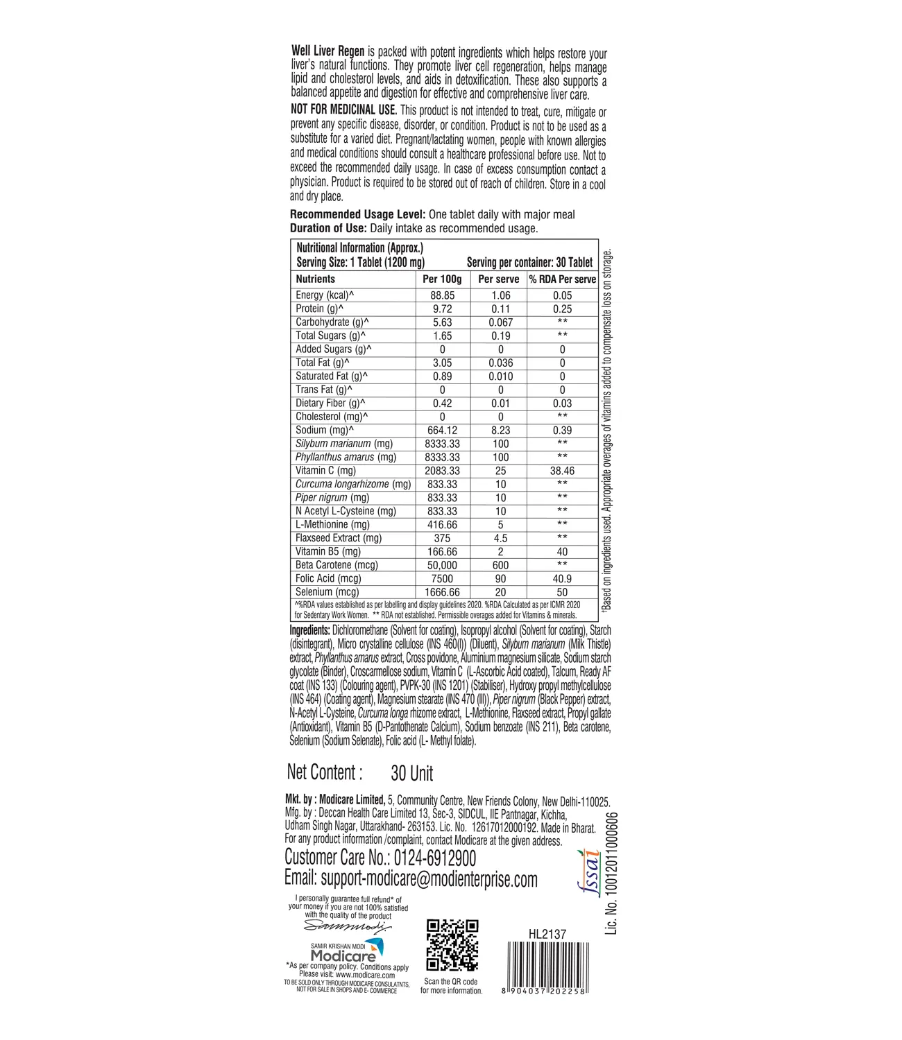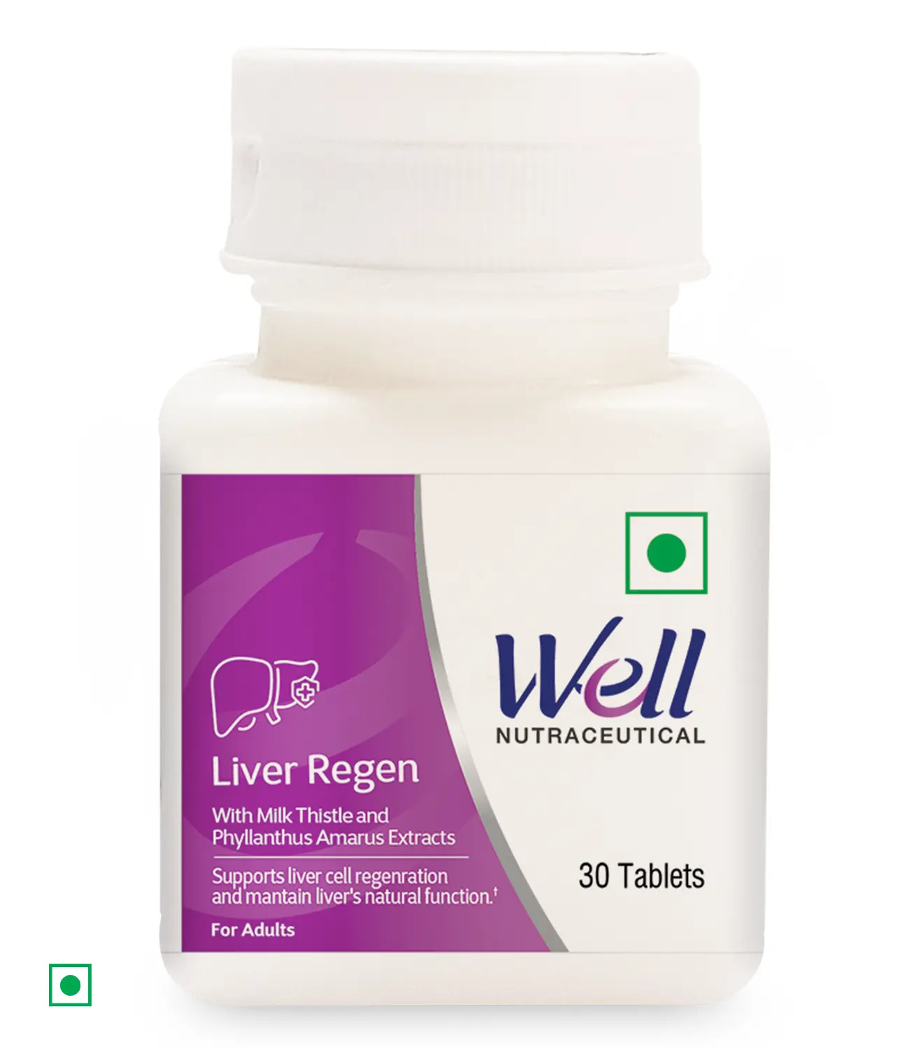 Well Liver Regen with Milk Thistle and Phyllanthus Amarus Extracts supports liver cell regeneration and maintains liver’s natural function^. It supports detoxification and the removal of toxins for efficient liver function and assists in regulating lipid and cholesterol levels to reduce fatty liver risks ^Based on ingredients used. Appropriate overages of vitamins added to compensate loss on storage.