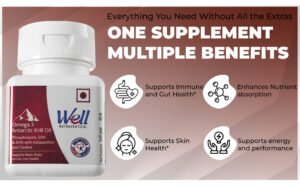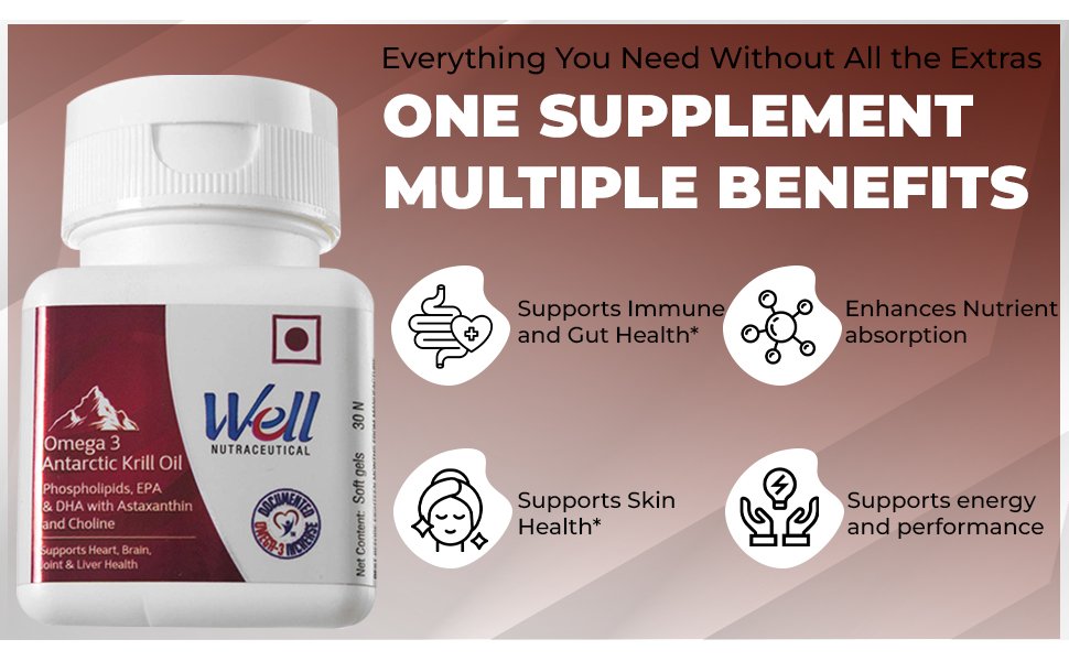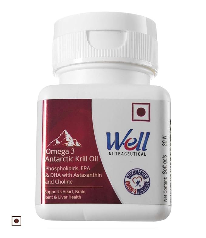 Modicare Well Omega-3 Antarctic Krill Oil ek advanced nutritional supplement hai jo aapke heart, brain, joint aur liver health ko powerful support deta hai. Isme natural krill oil hota hai jo phospholipids ke form mein Omega-3 provide karta hai — isse body mein fast & effective absorption hota hai.